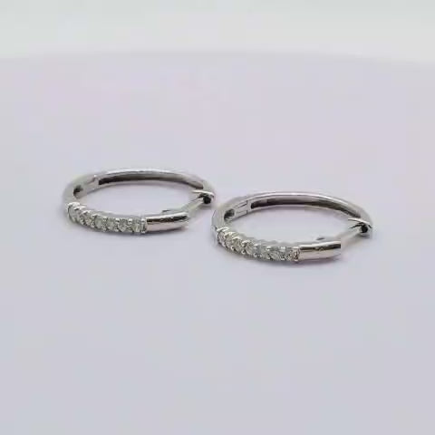 Aros hechos en oro blanco 14K con 14 diamantes corte brillante de 1 punto cada uno.